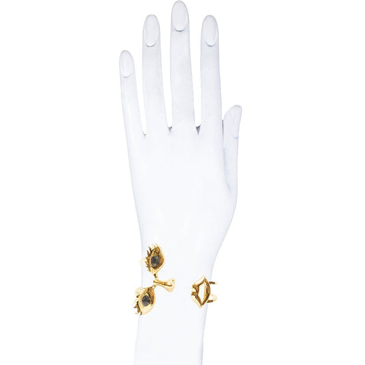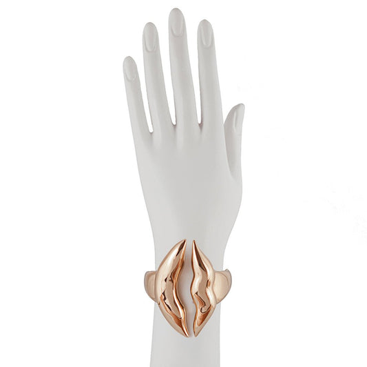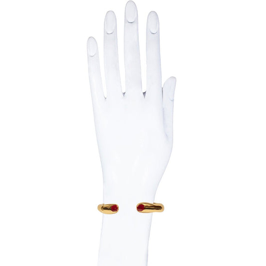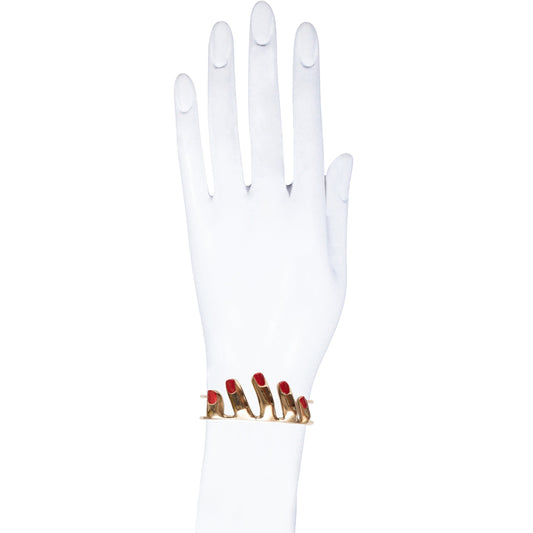 Multi lips brass cuff bracelet with 5 enamelled red lips