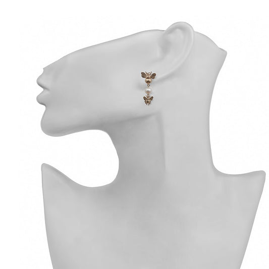 Bronze earrings with 2 bees and pearl