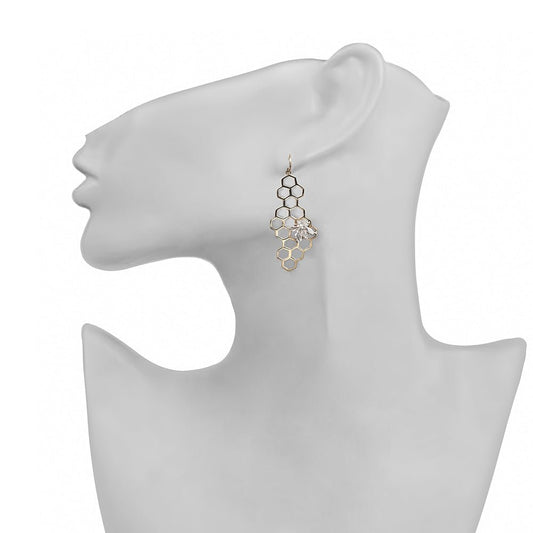 Silver honey comb with bronze bee earrings