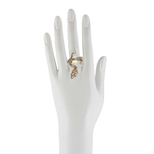 Arched snake bronze ring with pearl