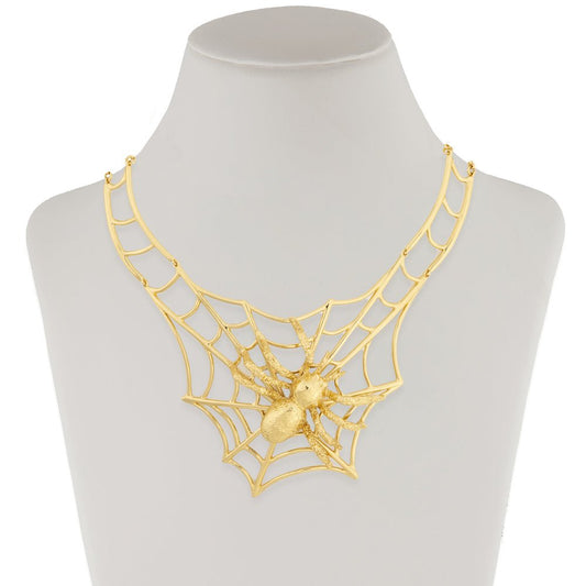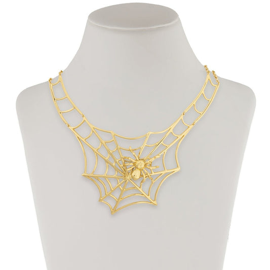 Brass web necklace with giant spider