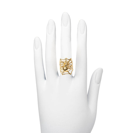 Web and spider bronze ring with pearl