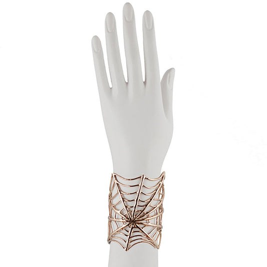 Bronze spiderweb cuff bracelet with spider