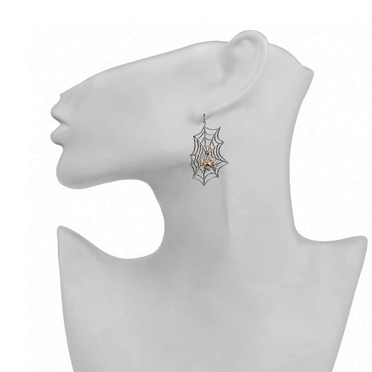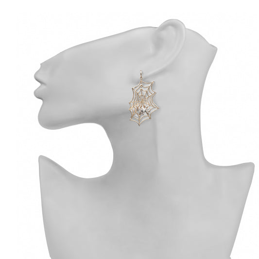 Silver web with bronze spider earrings