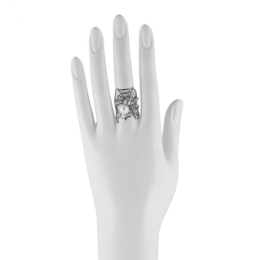 Web and spider silver ring with pearl