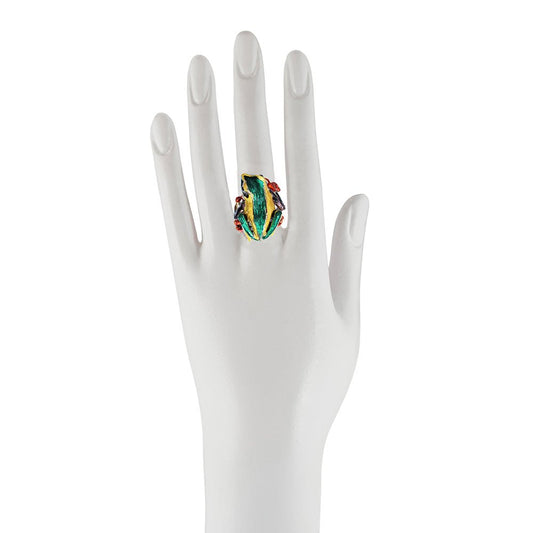 Big froggy bronze ring with enamel